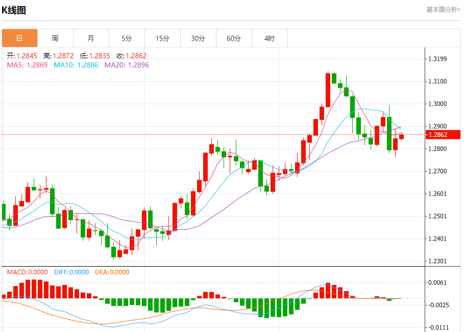 周一盘中,英镑/美元报1.2863,涨幅0.13%。