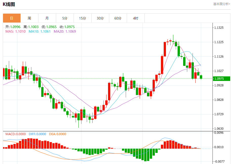 周二盘中,欧元/美元报1.0976,跌幅0.19%。