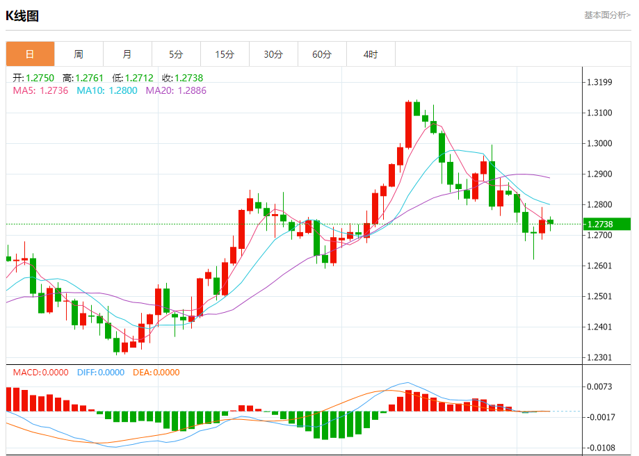周一盘中,英镑/美元报1.2739,跌幅0.09%。