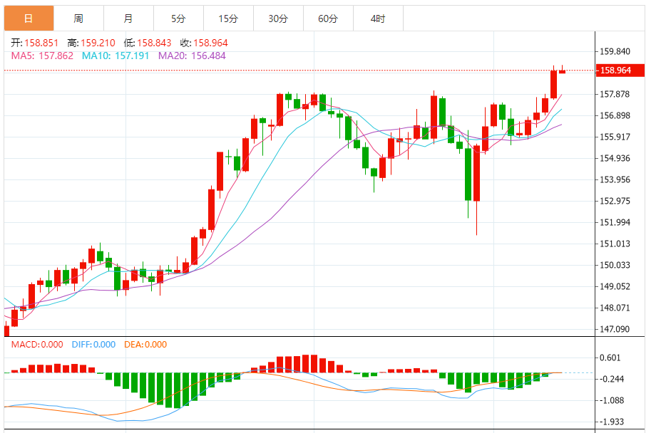 今天的预期交易范围:在158.20和159.80之间