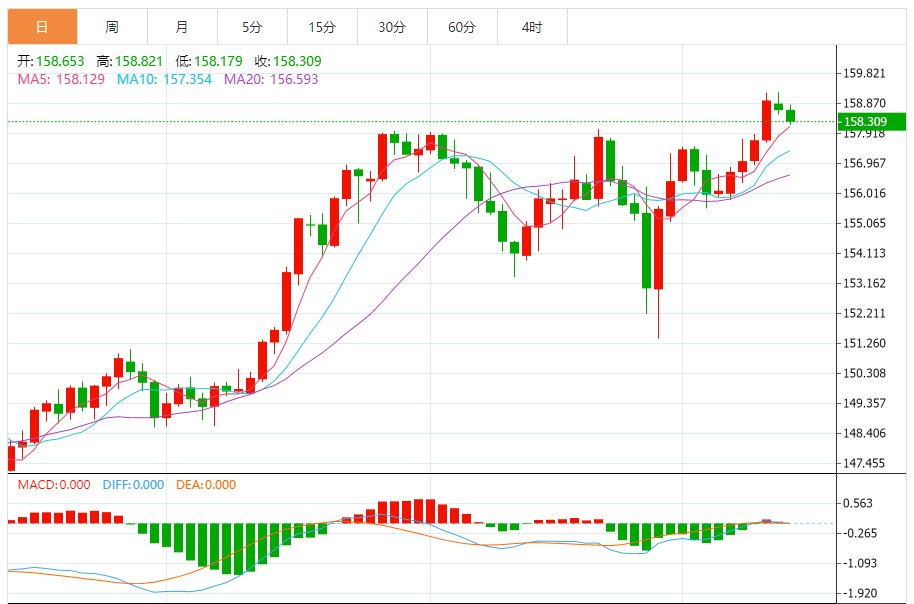 今天的预期交易范围:在157.80和159.80之间