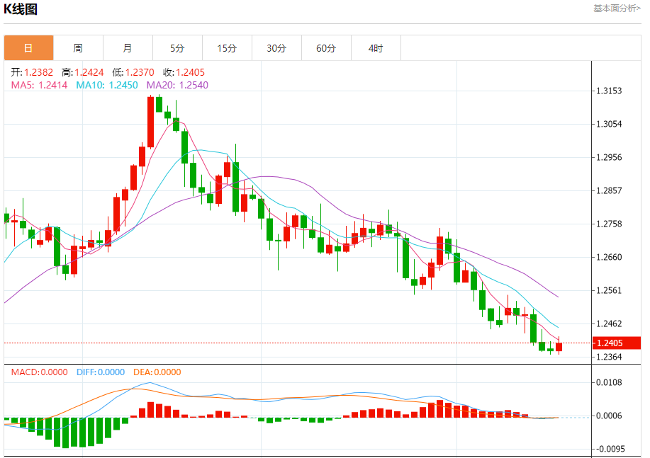 周二盘中,英镑/美元报1.2404,涨幅0.17%。