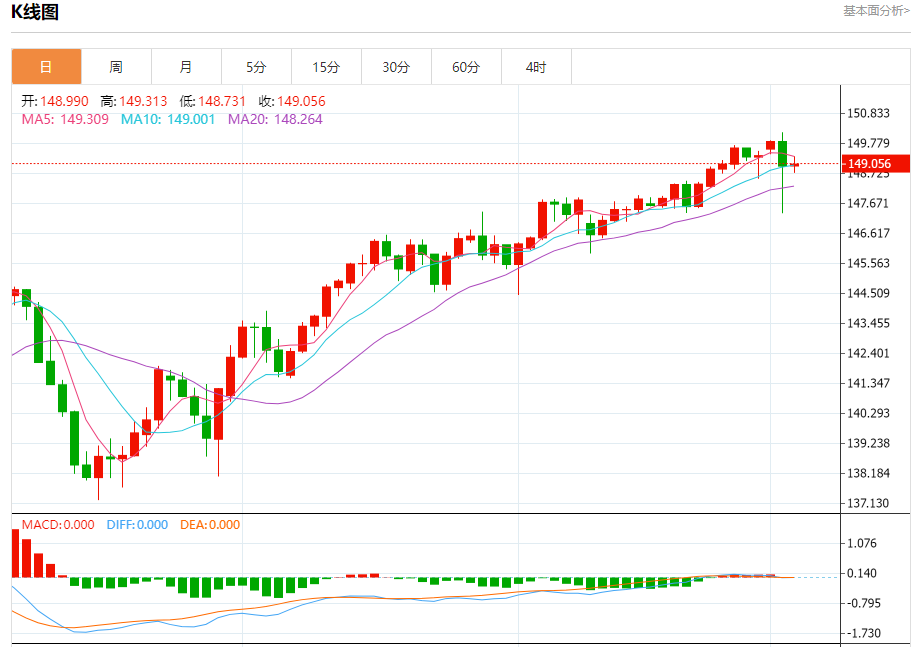 周三盘中,美元/日元报149.063,涨幅0.05%。