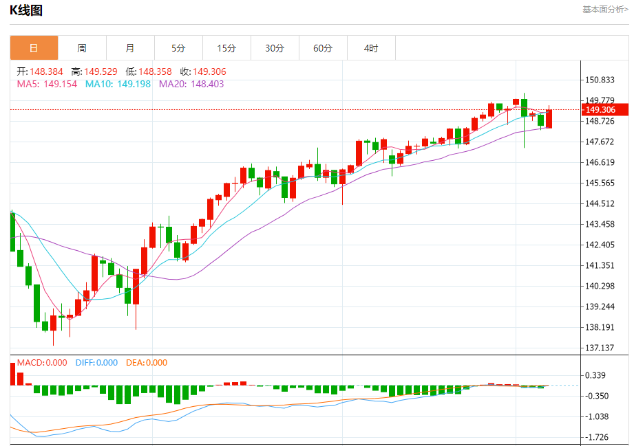 周五盘中,美元/日元报149.320,涨幅0.53%。