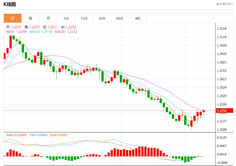 今日分析:在1.2210之上,看涨,目标价位为1.2275,然后为1.2300。