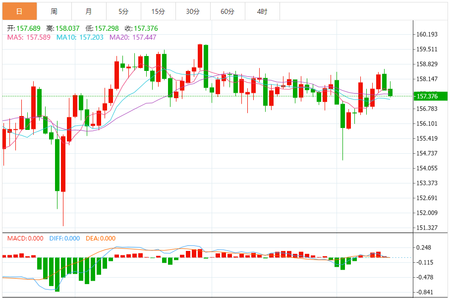 今天的预期交易范围:在157.40和159.20之间