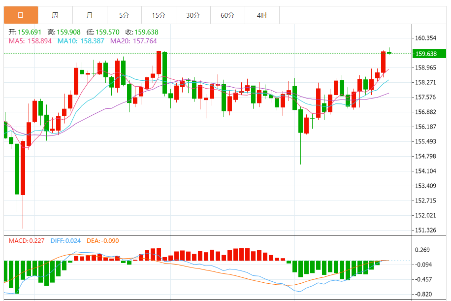 今天的预期交易范围:在158.90和160.60之间