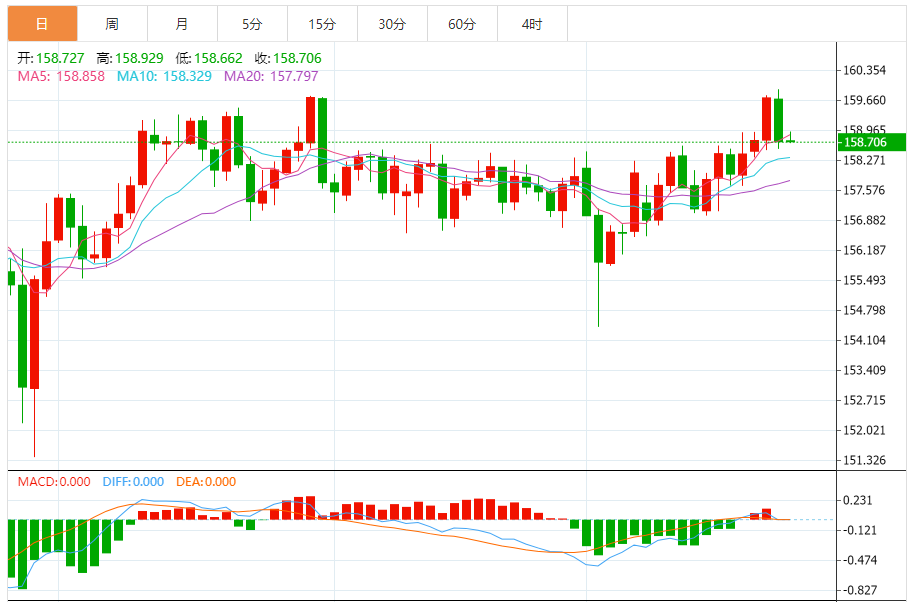 今天的预期交易范围:在158.60和159.60之间