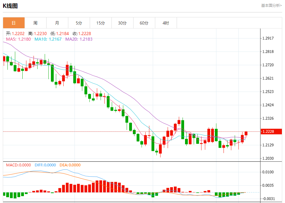周五盘中,英镑/美元报1.2229,涨幅0.20%。