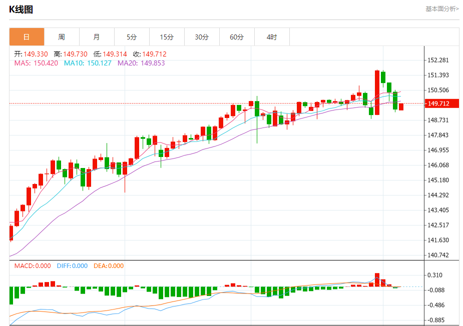 周一盘中,美元/日元报149.724,涨幅0.22%。