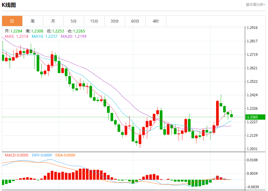 周四盘中,英镑/美元报1.2266,跌幅0.15%。