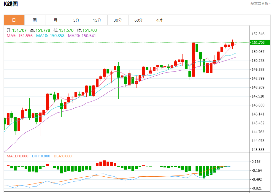 周二盘中,美元/日元报151.714,跌幅0.01%。