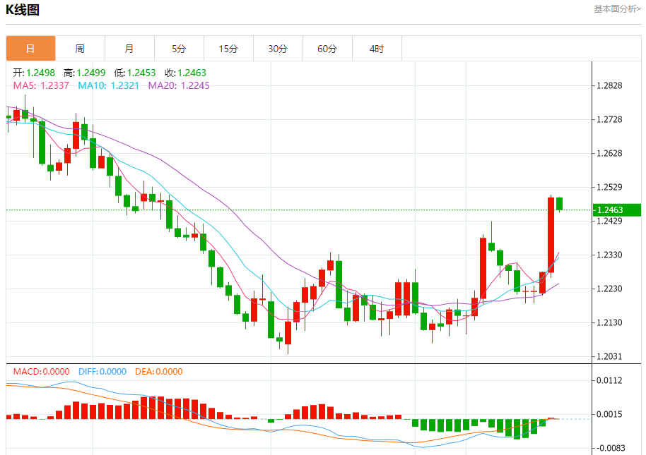 周三盘中,英镑/美元报1.2463,跌幅0.29%。