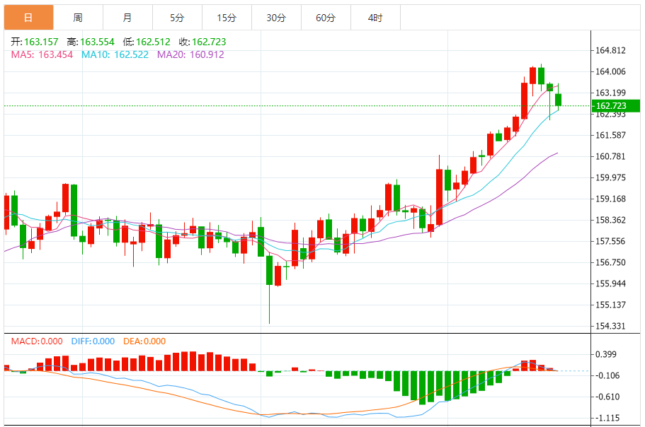 提供积极势头的随机尝试将确认保持由牛市通道内的主要稳定性引起的主要牛市轨道,预计在163.50重新形成压力,而超过它将推动价格形成强大的牛市波至目标163.90,随后到达牛市通道的阻力164.65。
