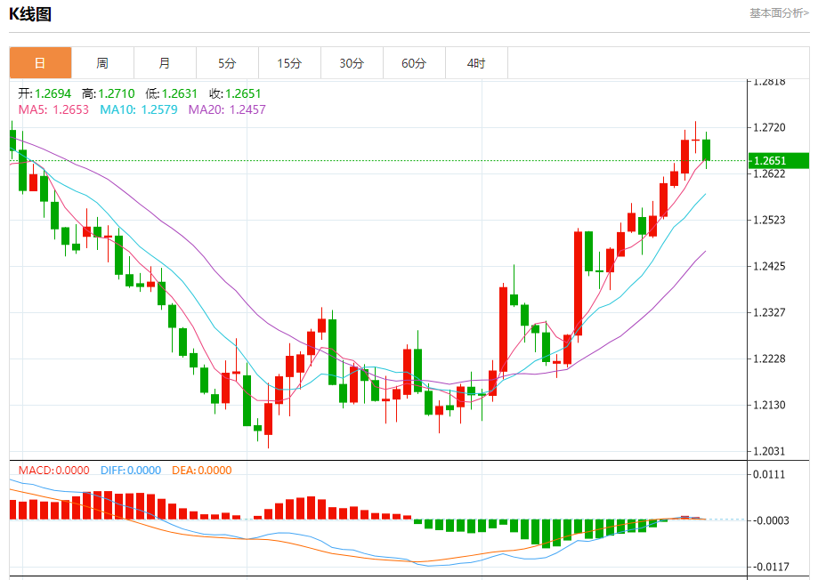 周四盘中,英镑/美元报1.2653,跌幅0.33%。