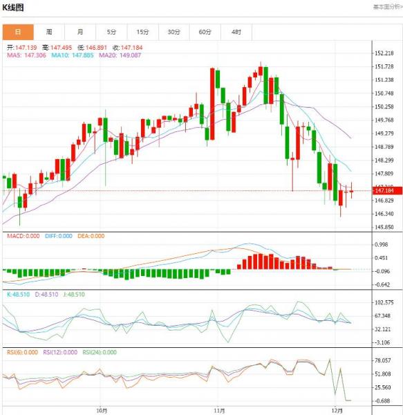 146.50是目前的支持水平价格行动似乎满足于预期下一个催化剂的交易。由于本周的工作重点主要集中在美国所以今天要密切关注美国就业局的私人就业人数数据。在看跌持续的情况下145单位是下一个支持水平。上涨市场出现在蓝色50天简单移动平均线和150马克。