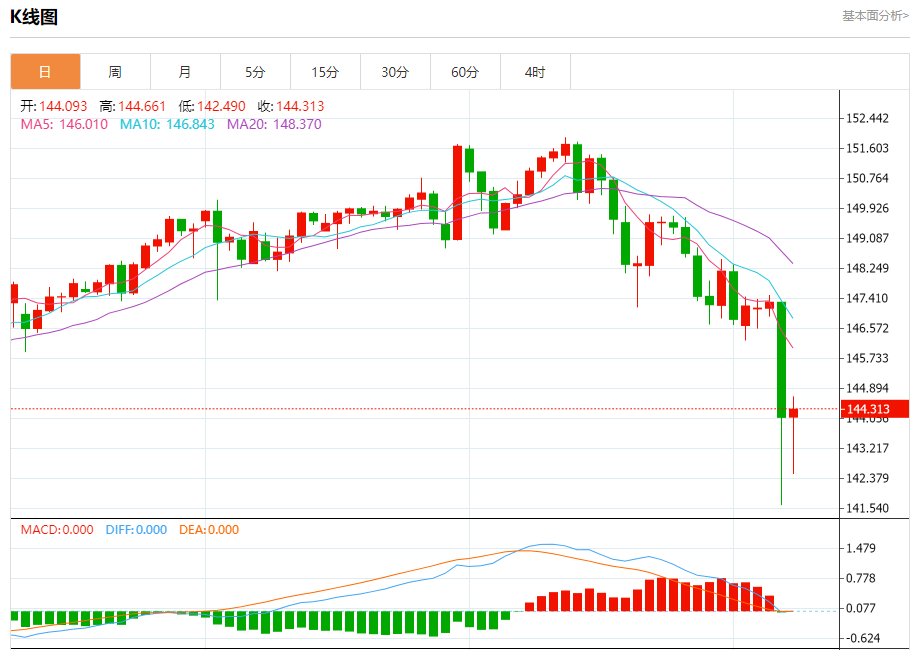 技术点评:只要144.60阻力位不被突破,向下跌破143.00位置的风险很高。
