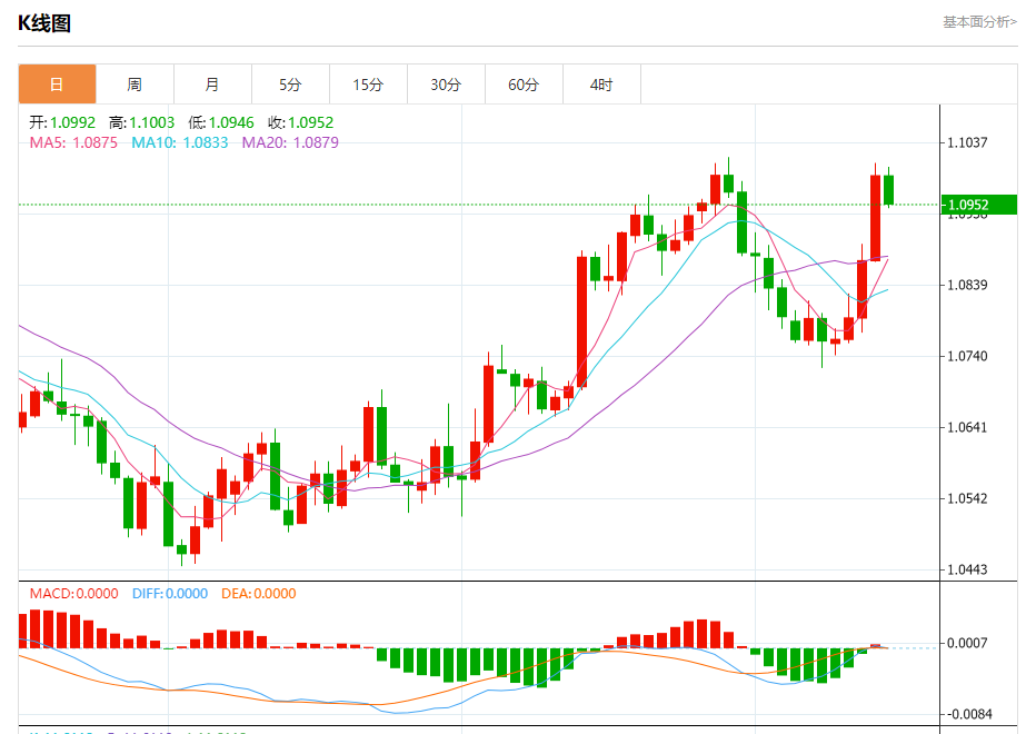 周五盘中,欧元/美元报1.0954,跌幅0.36%。