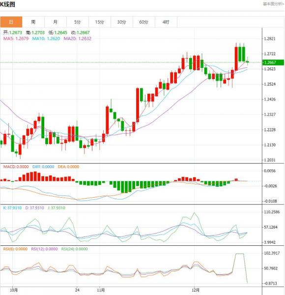 周五抛售后,英镑/美元早盘成交量略低于1.2700英镑/美元。对该货币对的支撑从1.2630点左右开始,降至1.2600点,这应该会持续到年底。最近1.2791点的多周高点和1.2826点的23.6%斐波那契回撤将在未来几天提供阻力。