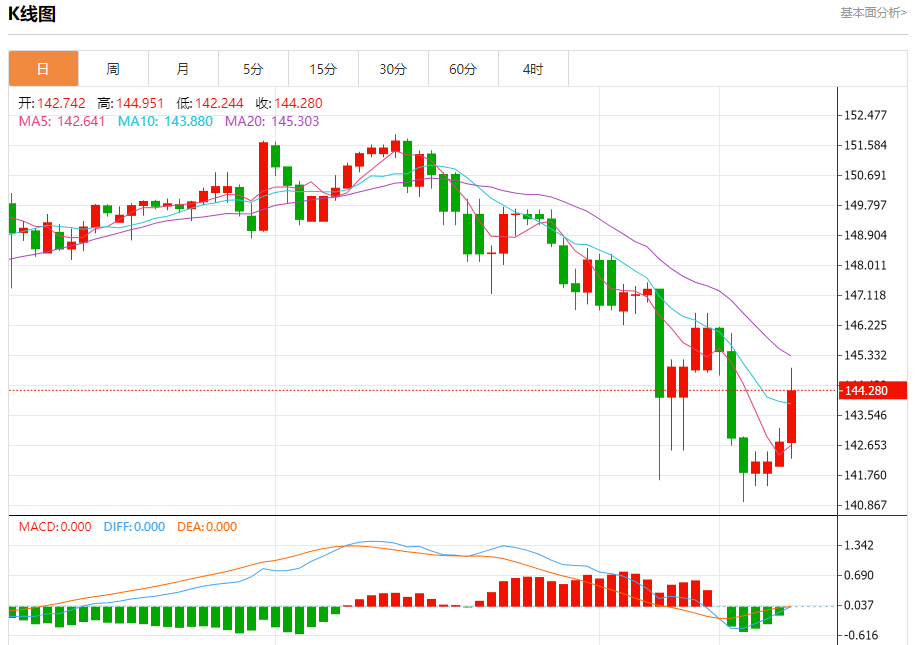 周二盘中,美元/日元报144.294,涨幅1.07%。