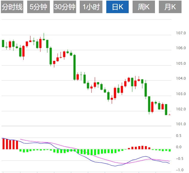 支撑位:101.80、101.50、101.30