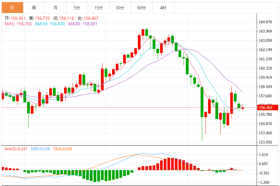 今天的预期交易范围:在157.00和155.85之间