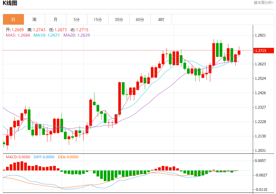周五盘中,英镑/美元报1.2716,涨幅0.20%。