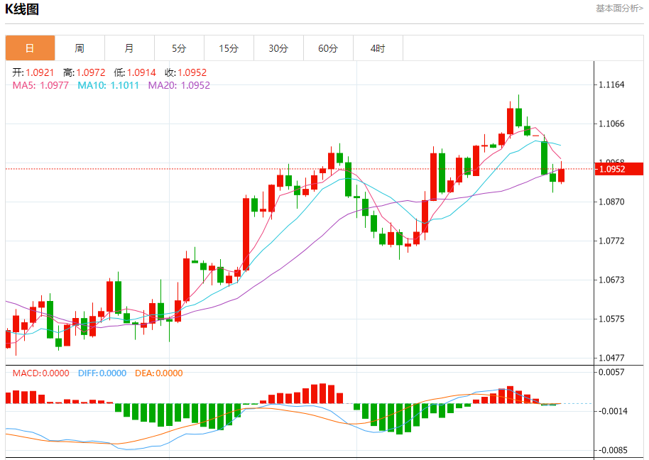 周四盘中,欧元/美元报1.0953,涨幅0.28%。