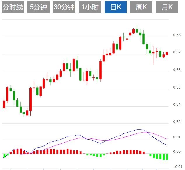 澳元周四在0.6720附近交易,低于9日指数移动平均线(EMA)0.6724。如果突破后者之上,澳元/美元货币对可能会更接近关键关口0.6750。