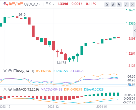 加元方面,市场普遍预计加拿大央行(BoC)将在一系列加息后于今年开始降息。第一次降息最早可能在今年春天进行。WIRP表示,降息在4月的会议上已完全定价,今年降息总额的近150个基点已被消化。与此同时,周二公布的加拿大12月消费者物价指数(CPI)可能为加拿大央行进一步实施货币政策提供一些线索。预计整体通胀率同比增长3.3%,而11月为3.1%。