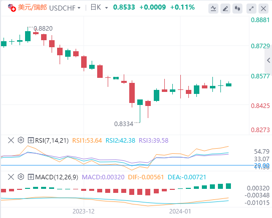 瑞士方面,在积极的经济数据推动下,瑞士法郎上周获得支撑并录得盈利。12月份的消费者物价指数(同比)显示持续增长,实际零售销售额也有所改善。这些积极的经济指标推动了瑞郎的整体走强。