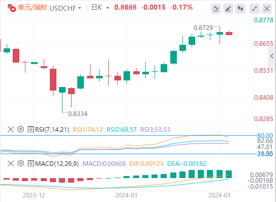 在经济指标方面,瑞士联邦统计局上周报告称,与11月份相比,12月份生产者和进口价格的降幅有所放缓。展望未来,交易商热切期待下周公布的实际零售销售和ZEW调查-预期。预计这些数据将进一步揭示瑞士国家银行的利率轨迹。