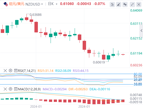 1月26日,周五亚市早盘,纽元/美元震荡走弱在0.6100关口上方。美国国内生产总值增长为美元提供了一些支撑,并打压纽元/美元。投资者将从周五公布的美国核心个人消费支出价格指数(CorePCE)中获得更多线索,以寻找新的推动力。这一事件可能会引发市场波动。