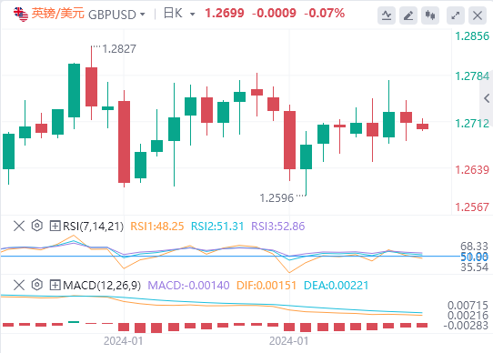 市场情绪谨慎,英镑难以维持在1.2700整数关口阻力位上方。英镑/美元货币对的价格走势表明波动性急剧收缩。近期对英镑/美元的需求正在减弱,因为它难以维持在20期指数移动平均线(EMA)上方,该均线在1.2700附近交投。在日线时间框架上,可以看到在大幅反弹后的库存调整拍卖,这表明没有潜在的经济触发因素来提供新的指导。14期相对强弱指数(RSI)在40.00-60.00之间震荡,表明缺乏新的推动力。