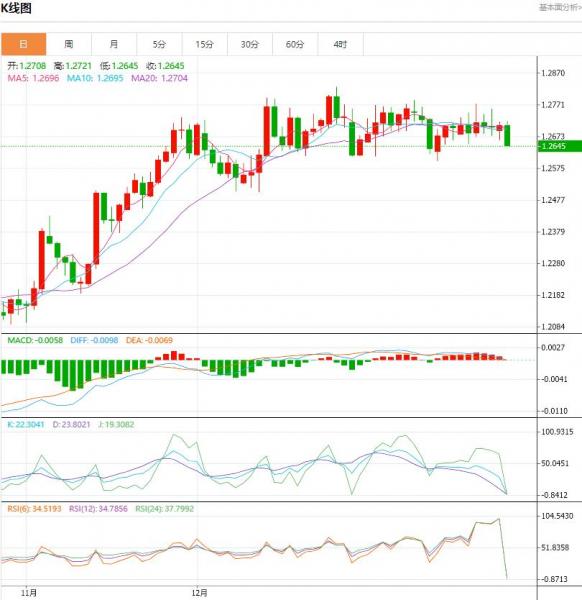 英镑实际上停留在12月底1.28247的顶部和从10月初低点升至四个月高点的首次斐波那契回撤之间的区间。1.26365。