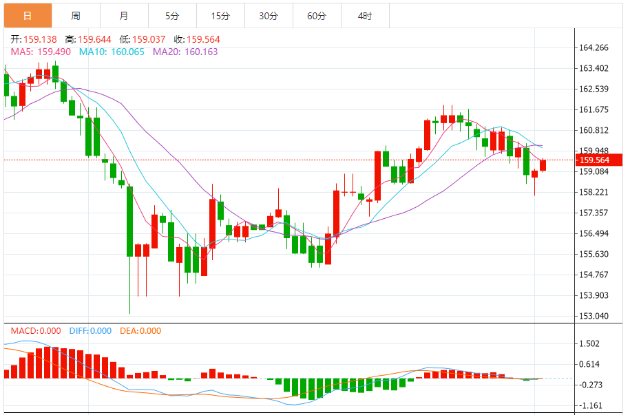 目前的看涨反弹不会对看跌轨道形成任何威胁,因为经常稳定在看跌通道的阻力线160.00以下,因此,我们将继续等待收集额外的负面势头以设法开始下跌,并瞄准一些从159.00开始随后到达158.40的负面站。