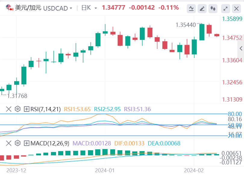 此外油价下跌通常削弱加元,可能为美元/加元提供额外支撑。以色列-哈马斯停火的前景带来了主要产油区危机缓和的希望,并对原油构成压力。然而,投资者仍然担心伊朗支持的胡塞叛军会在占全球石油贸易近12%的重要红海海域袭击船只。此外,美国能源信息署(EIA)在周二发布的2月份短期能源展望报告中,下调了2024年国内石油产量增长预测,缓解了对供应过剩的担忧。加上行业数据显示上周美国库存增长低于预期,这可能会成为原油价格的翘尾因素。市场参与者现在期待着今天晚些时候公布的美国官方EIA石油库存数据,其中还将包括上周的产量数据。除此以外,美国和加拿大的贸易平衡数据以及美联储官员的讲话都可能为该货币对带来短期交易机会。