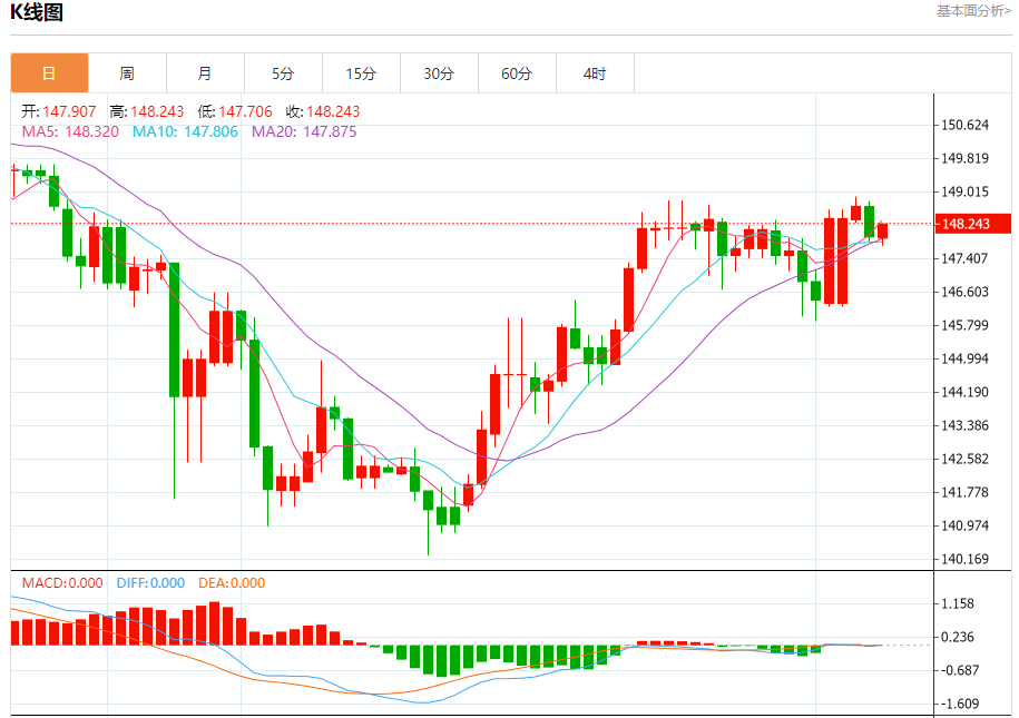 周三盘中,美元/日元报148.252,涨幅0.21%。