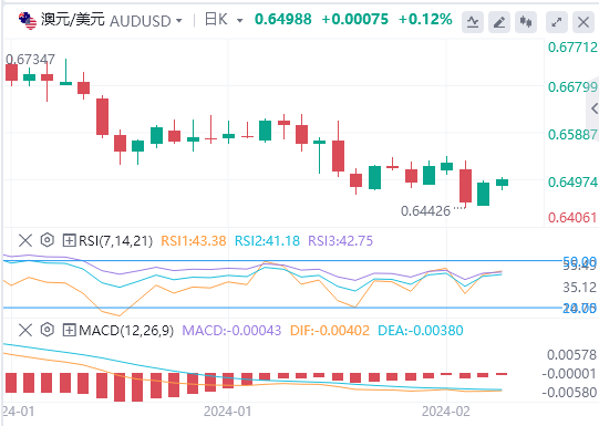 另一方面,美元止住了隔夜从11月14日以来最高水平回调的跌势,并成为限制澳元/美元汇率上行的另一个因素。周二公布的美国消费者通胀数据强于预期,进一步推低了美联储(Fed)在今年年中首次降息的预期。事实上,美联储基金期货已经排除了3月份降息的可能性,认为6月份会议上宽松的可能性接近80%,到今年年底大约会有三次25个基点的降息,而两周前是五次。这一点,加上中东冲突引发的地缘政治紧张局势,进一步有利于澳元的相对避险地位,并阻止交易商围绕风险敏感的澳元进行激进的看涨押注。