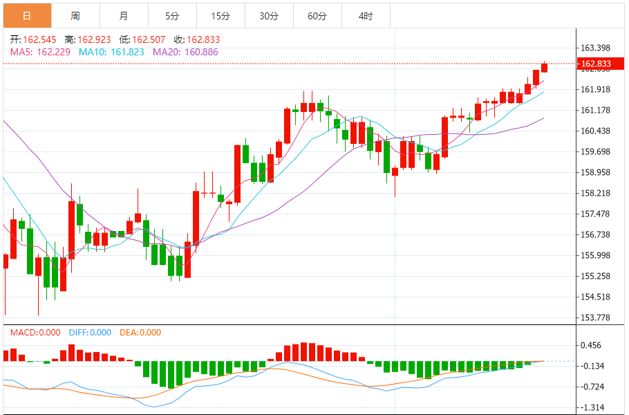 由于看涨通道内的持续波动,价格无法逃脱重新看涨的尝试,161.80水平继续形成第一个主要支撑,此外,主要指标将增加攻击163.20关口的机会,这是检测中期趋势的关键。
