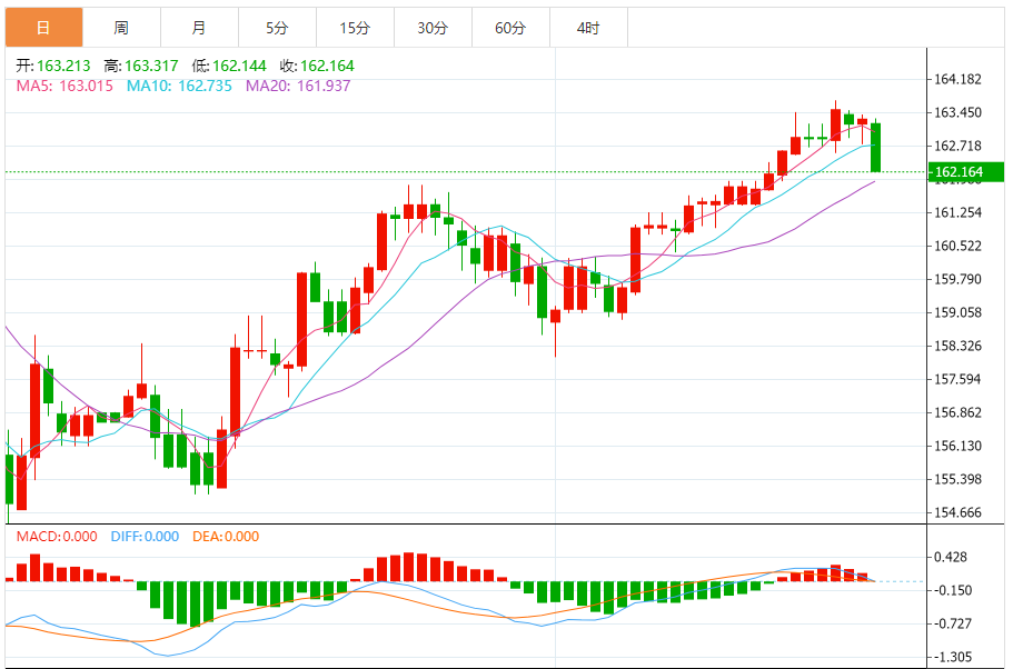 今天的预期交易范围:在162.00和163.20之间