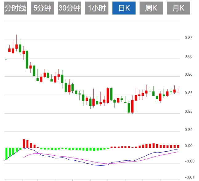 如果该资产突破 2 月 22 日高点 0.8576,将出现新的上行空间,推动该资产跌至 0.8600 的整盘阻力位,然后是 1 月 16 日高点 0.8620 附近。