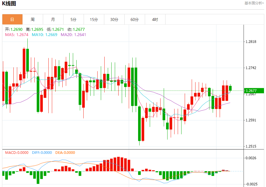 周二盘中,英镑/美元报1.2677,跌幅0.12%。