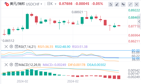 据预测,2月整体通胀年率将保持在3.1%,而2月份核心通胀年率将从1月份的3.9%降至3.7%。这一数据可能会引发市场波动。若美国通胀强于预期,可能会抑制美联储降息的前景,这可能会提振美元,同时并为美元/瑞郎带来顺风。