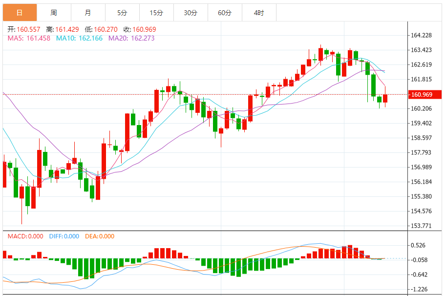 今天的预期交易区间:在161.60和160.25之间