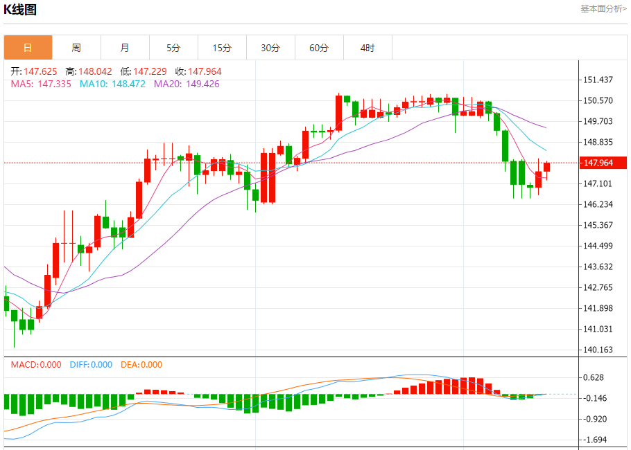 周三盘中,美元/日元报147.968,涨幅0.24%。