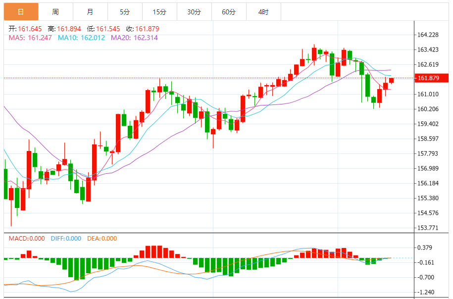 技术上,欧元兑日元仍然受到主要指标之间矛盾的影响,继续推迟负面攻击并朝着161.88形成明显的正面反弹以面对MA55,注意到在达到162.10障碍时监控价格行为是重要的,因为它对检测近期和中期趋势非常重要。