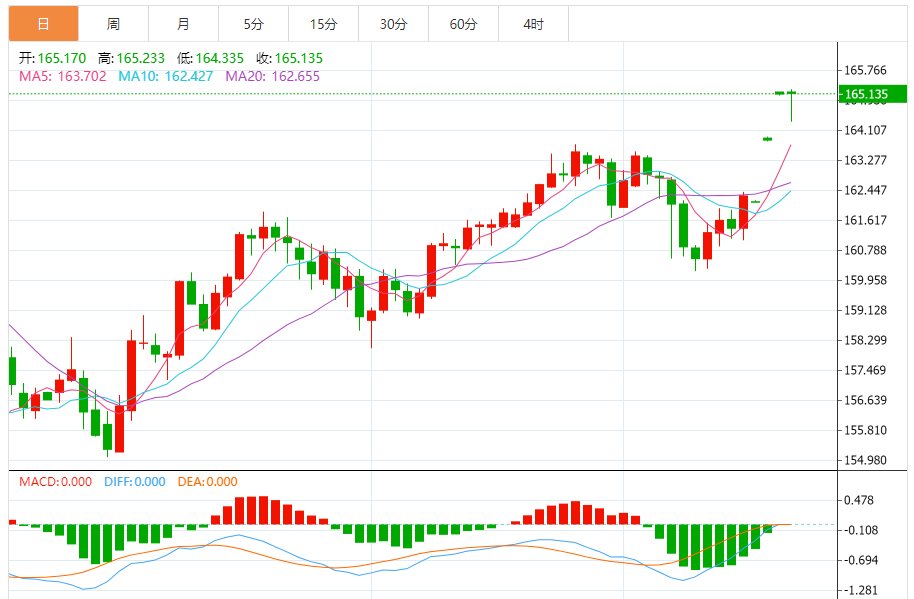 技术上,欧元兑日元昨日继续看涨,利用163.75水平形成的额外支撑,通过触及165.30的目标实现大幅上涨,随后形成一些混合交易,以再次聚集额外的积极势头。