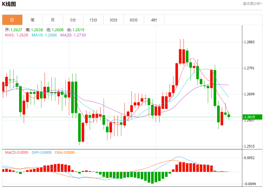 支撑位:1.2605 1.2590 1.2575
