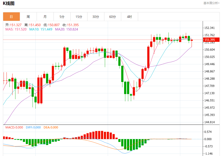 周五盘中,美元/日元报151.406,涨幅0.04%。